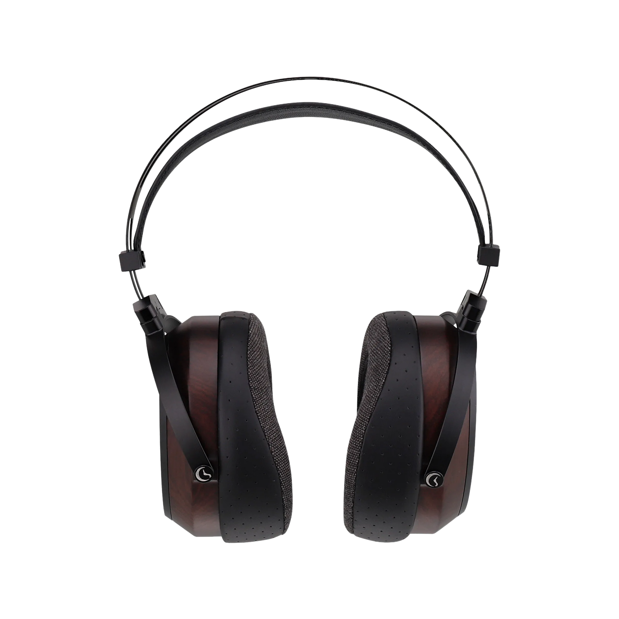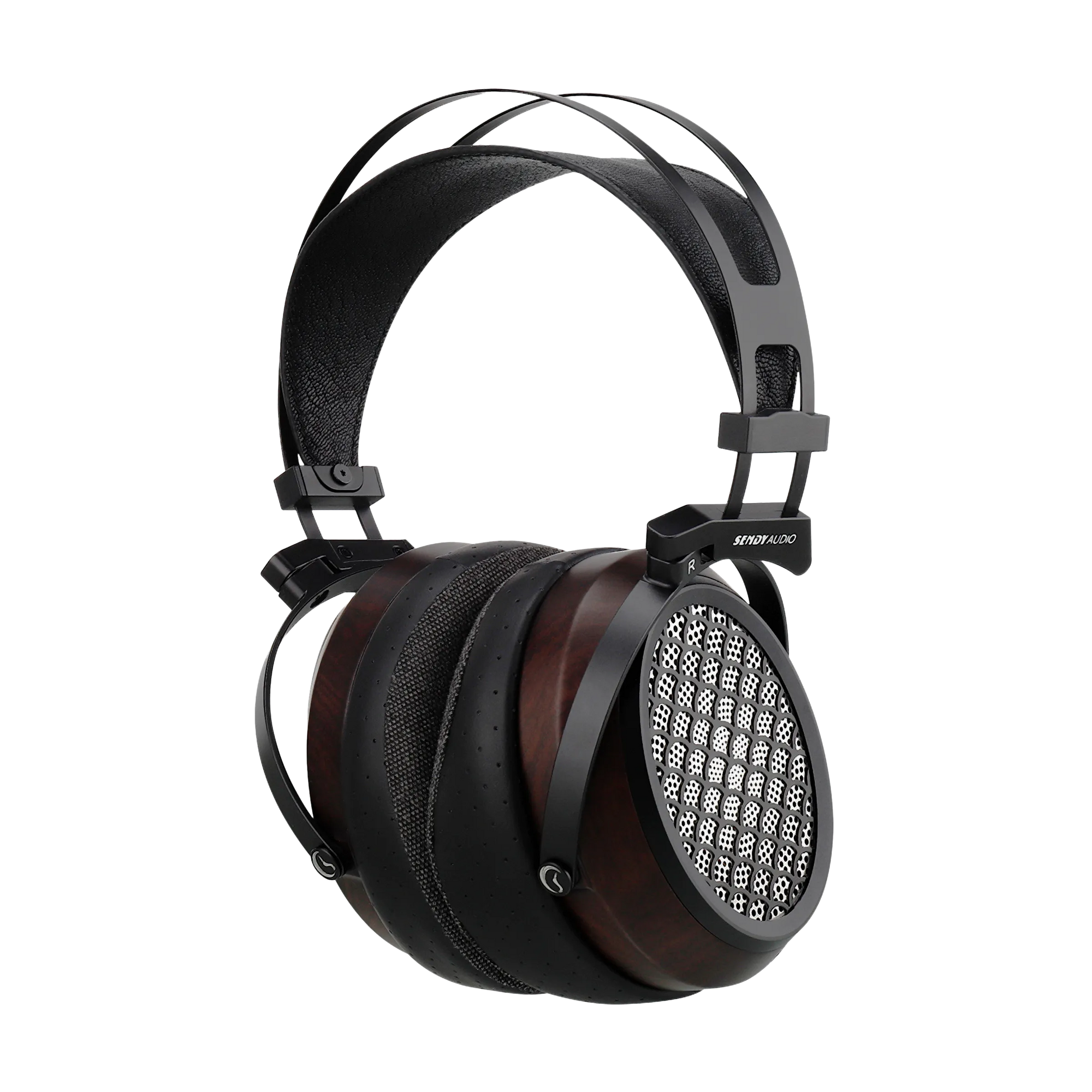CNC-machined zebrawood housings provide a classic, premium look while exploiting the wood’s natural acoustic warmth. Metal structural components add rigidity and longevity, creating a balanced aesthetic of craft and precision. A fish-scale mesh detail completes the finish, offering refined visual texture without compromising acoustic transparency.