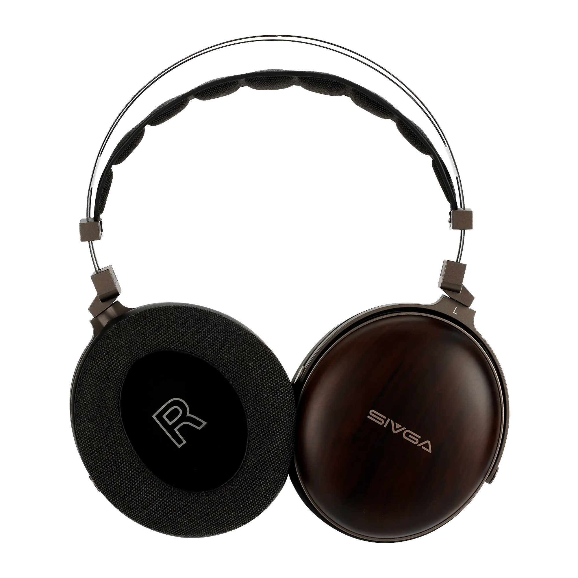 The SIVGA Peng blends organic warmth with industrial precision. High-density African zebrawood earcups are polished, stained and air-dried to reveal their unique grain, while aviation-grade aluminium brackets and housing are CNC-machined and gunmetal-anodised for sleek durability. A lamb-leather headband pad atop an integrated steel frame resists deformation and distributes pressure evenly, marrying refinement with lasting strength.
